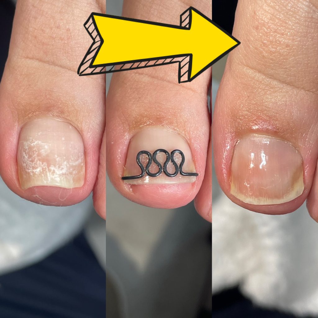 爪が巻いてしまっているせいで痛みがあり爪の幅も細くなってしまってましたが3ヶ月間矯正をしただけでここまで広がり痛みもなくなりました。
