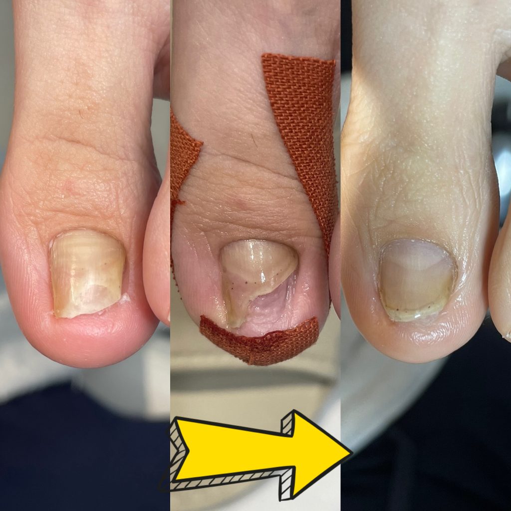 こうなってしまった経緯をお聞きしたところ巻き爪の治療をした後に剥離が進んでしまったようです。お医者さんやサロンに2年ほど通われたそうですがなかなか良くならなかったそうです。